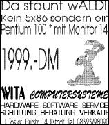 Als Geschäftsführer der Firma WITA Computersysteme kann ich inzwischen schon auf eine beträchtliche Anzahl von Jahren der Tätigkeit in diesem Bereich und einige Generationen von Rechnersystemen zurückblicken. Mein Interesse an PCs begann, als diese noch im reinen Diskettenbetrieb liefen und über einen Arbeitsspeicher von 32-64 KB verfügten.